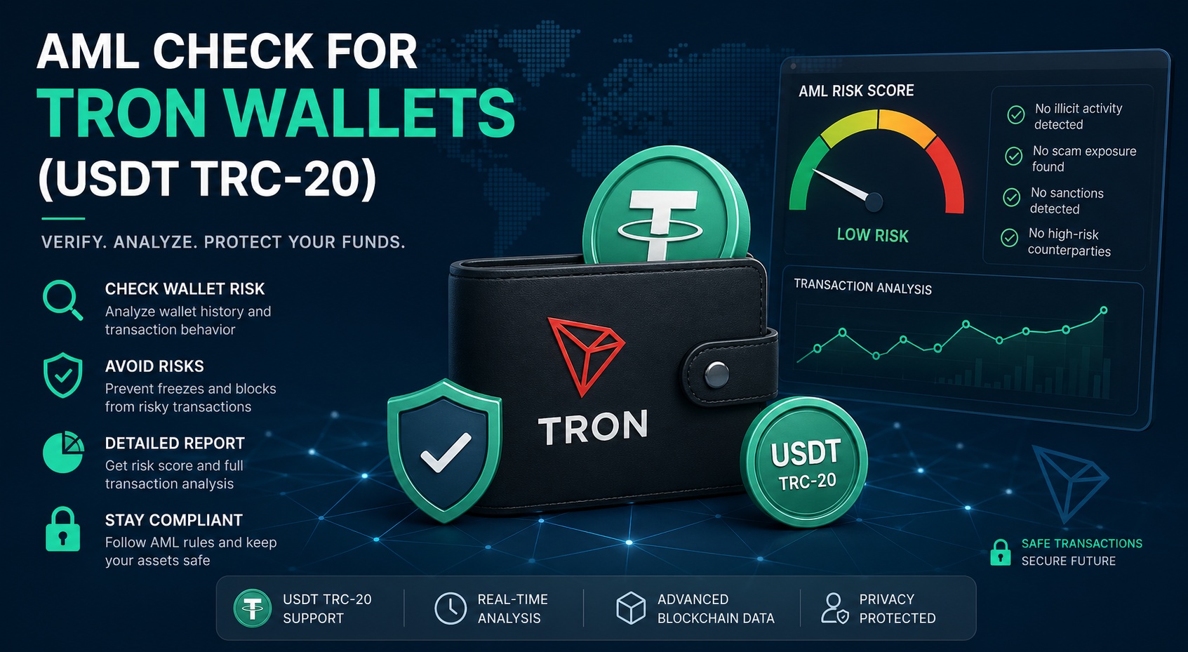 With the growing popularity of the TRON network and the USDT TRC-20 stablecoin, more and more users are facing the need to check cryptocurrency wallets for “cleanliness.” AML (Anti-Money Laundering) checks help identify risks associated with illegal sources of funds and prevent asset freezing.