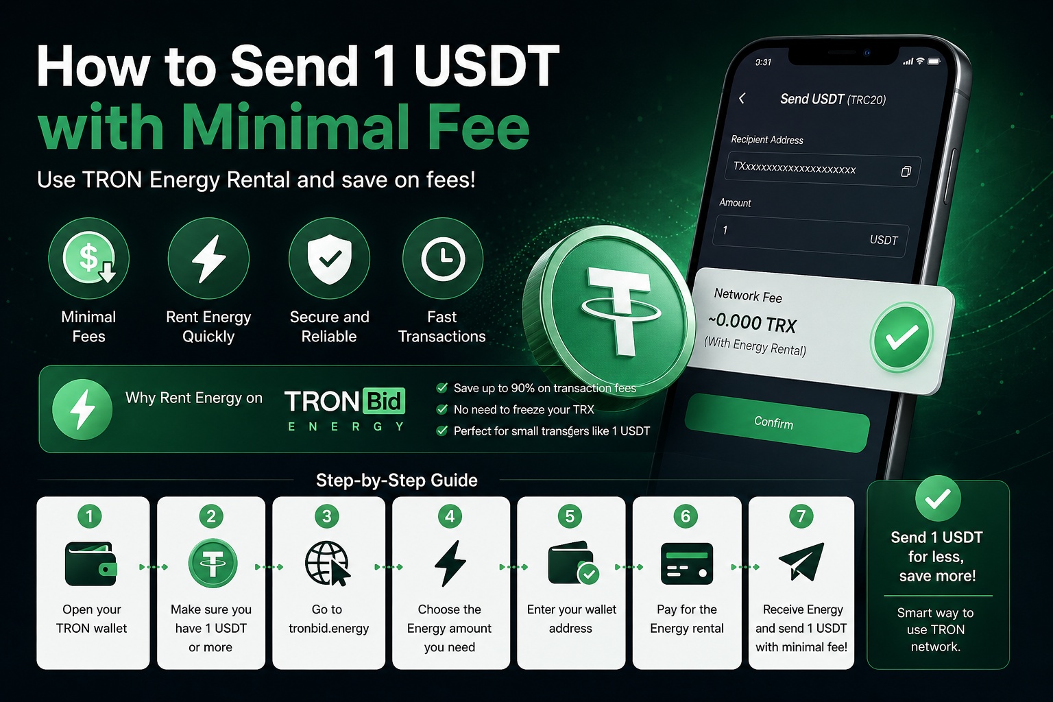 How to Send 1 USDT with Minimal Fees — Complete Guide + TRON Energy Rental